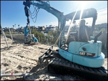 Phase 2 of the project began once the swimming pool was dug. Our team arrived on site and installed helical piles to a depth of 21′, 7′ past what was estimated. Helper piles were required due to some pilings not securing the pile capacity of 12 tons, due to the site’s soil conditions.