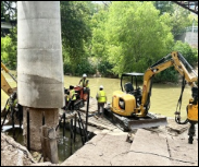 Ram Jack Installs (20) Helical Piles to Support a Large Column on the Rosemont Pedestrian Expansion Bridge in Houston, TX