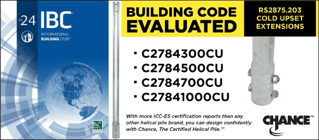 For the latest ESR Report and a list of Chance Building-Code-Approved products visit: https://www.hubbell.com/chancefoundationsolutions/en/resources/technical-literature/building-code-reports