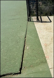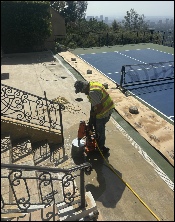 Ram Jack SoCal was called to evaluate settlement at a newly constructed hillside pickleball court in Beverly Hills, California. The property overlooks a canyon, and the flatwork surrounding the court had recently undergone demolition and reconstruction to accommodate the new recreational space.