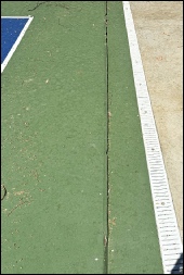 During the initial construction, additional caisson support was installed directly beneath the pickleball court. However, the surrounding flatwork areas did not receive the same level of support. As a result, those sections began to settle, creating uneven surfaces and a potential safety hazard for users.