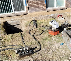 was called out to investigate (3) separate multi-unit apartment buildings at The Shores at Lakeview in Pueblo, CO. Several units showed large drywall cracks and sloping floors. The 120’ long buildings measured differential settlement of over 3.5 inches. Working with local Engineering firm Printz Engineering Services (PES), a design to install 57 helical piles on 2 of the buildings was created. Straight Line Construction installed (57) total, 2 7/8” Ram Jack helical piles with a single 8” helical plate to an average 23’ depth. Once the piles and brackets were installed, hydraulic jacks were connected to manifolds and each structure was lifted to maximum practical recovery. Straight Line Construction also used poly foam injection to recover the interior slab floors to near original elevation. The installation was completed in two phases minimizing the disruption to residents in the area with an additional phase on the 3rd building forthcoming.