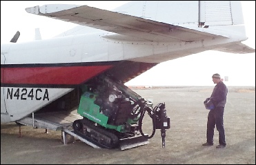 After numerous weather delays, Techno Metal Post Alaska, LLC was able to install 4 of our P6 (6") helical piles in Scammon Bay, Alaska. Just accessing the remote Alaska town was tough enough. The travel for over 10,000# of equipment and materials required us to utilize only aircraft. The first leg of travel involved flying everything onto an air cargo jet to the Western Alaska ‘hub” city of Bethel, Alaska. The next leg required several smaller flights on the a smaller plane to the coastal city of Scammon Bay. Our EM-1 machine fits beautifully into the smaller cargo plane. Adding another factor, this February job saw temperatures dip below -20 degrees with wind chills much lower.